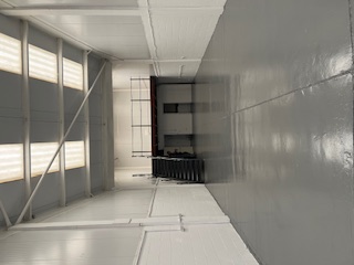 -  Electric roller shutter door (approximately 2.9 wide by 3.3 high) with a personnel door to side of shutter